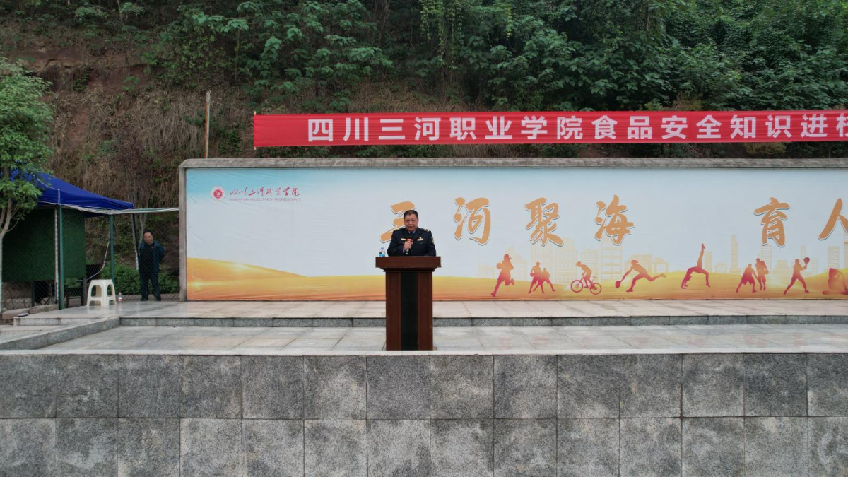 10月25日下午,在博湾运动场,学校特邀合江县市场监督管理局李伟老师到校为2022级新生开展食品安全知识进校园宣传讲座。学校副校长苏彬、后勤处处长徐林、学生处副处长汪煜及2022级辅导员参加了讲座活动。讲座由后勤处副处长王杰主持。