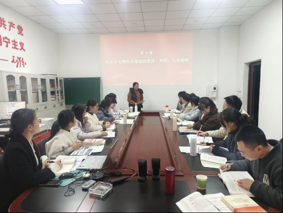 为深入贯彻落实学校教育教学改革精神,凝聚教学合力、提升育人实效。近日,马克思主义学院习近平新时代中国特色社会主义思想概论教研室围绕“社会主义现代化建设的教育、科技、人才战略”专题开展集体备课暨教学公开课活动。教研室主任杨林主持会议,詹瑾涵老师主讲并进行教学公开课展示,教务处教学建设科科长王玲出席指导。马克思主义学院全体教师齐聚一堂,共研教学重点、优化教学设计,为打造优质思政课堂筑牢基础。