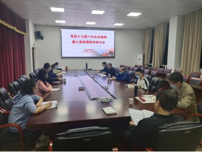 为深入推动党的十九届六中全会精神在广大青年学生中入脑入心入行,把准教学融入的结合点,提升思想政治理论课立德树人的有效性和针对性,根据教育部高校思政课教学指导委员会关于党的十九届六中全会精神融入“毛泽东思想和中国特色社会主义理论体系概论”课的教学建议,4月14日晚,四川三河职业学院思政教研室在行政楼二会议室组织召开关于党的十九届六中全会精神融入思政课教学研讨会,学校副校长陈真教授亲临指导,全体思政课教师参会。