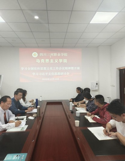 10月10日下午,马克思主义学院学习全国宣传思想文化工作会议精神暨开展学习习近平文化思想研讨会在学院会议室举行。学校副校长、马克思主义学院院长陈真教授主持学习并讲话。匡雪萍老师带领大家学习具体内容,周长玲老师分享在习近平新时代中国特色社会主义思想概论课中如何讲解习近平文化思想。