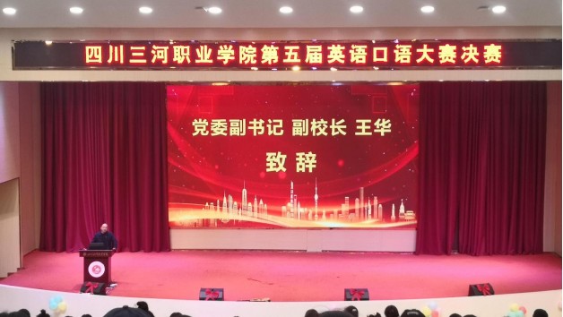 3月17日晚,四川三河职业学院第五届英语口语大赛在学术报告厅举行。学校党委副书记、副校长王华,教务处处长丁小林,基础教学部教办主任胡青海等领导出席。外语教研室6名教师担任评委,近500名学生观看本次大赛。